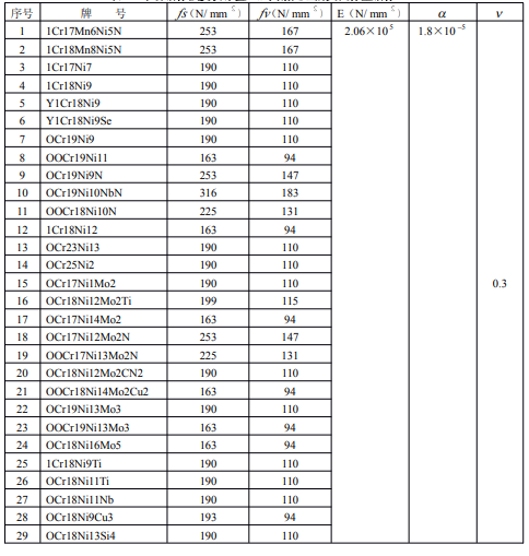 K2=3/1.4=2.143。不銹鋼棒K2取1.087,不銹鋼棒強度設計值如下: