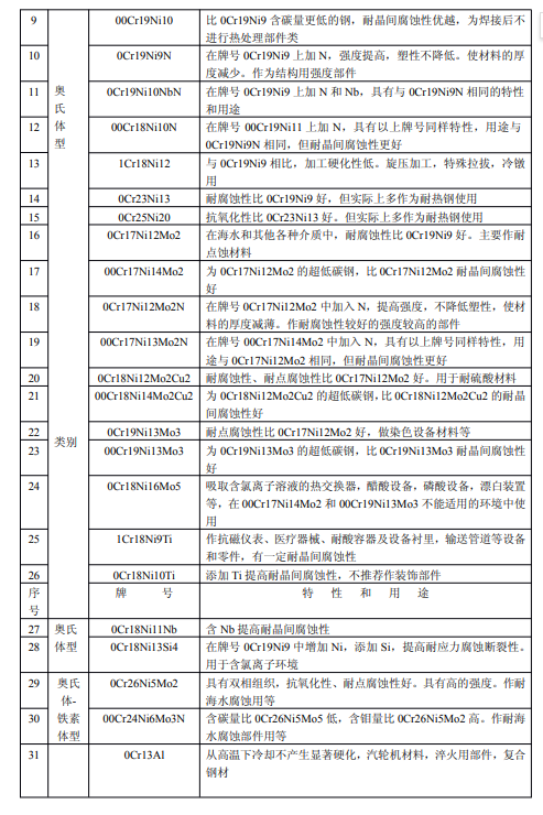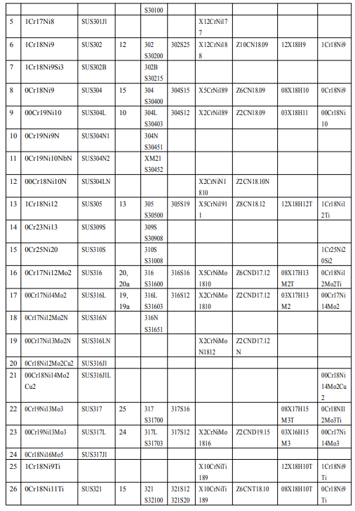 鉻鎳不銹鋼——如0Cr18Ni9Ti、Cr18Ni12Mo2Ti