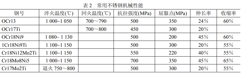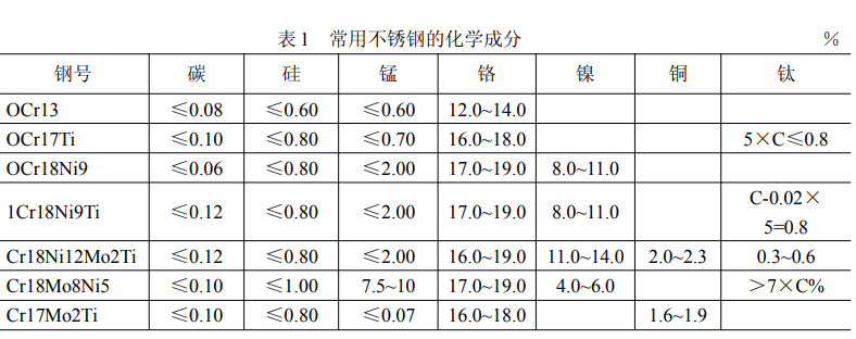 韌性較大及具有良好焊接性能的品種:OCr1 3OCr1 7TiCr1 8OCr1 8Ni9Cr1 8Ni81 Cr1 8Ni9TiCr1 8Ni1 2Mo2TiCr1 8Mn8Ni51 Cr1 7Ni1 3Mo2TiCr1 7Mo2Ti。但用得比較多的還是 Cr1 8Ni1 8Cr1 7Ti1 Cr1 7Mo2Ti