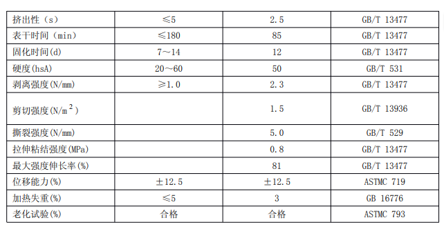 按我國標(biāo)準(zhǔn),聚硫密封膠性能應(yīng)符合表 1 的要求